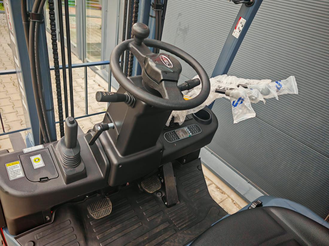 Wyposażenie: przesuw boczny wideł, opony pneumatyczne, oświetlenie robocze.