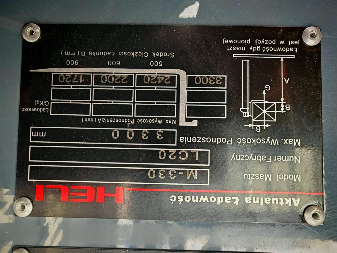 Wyposażenie: przesuw boczny wideł, opony pneumatyczne, oświetlenie robocze.